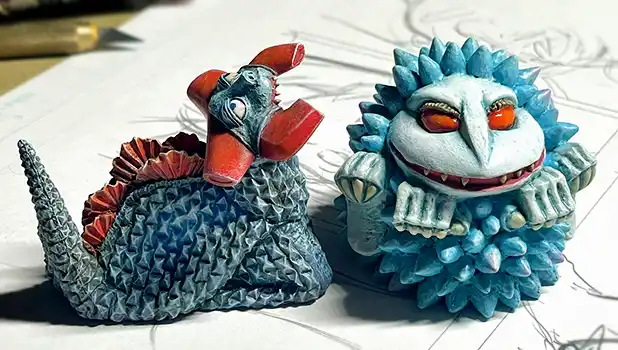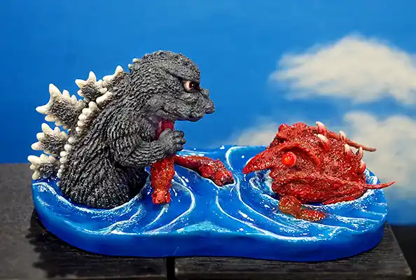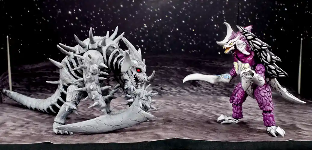 最新作は、20cmサイズで造形されたエレキング対ミクラスの対決ジオラマ。
