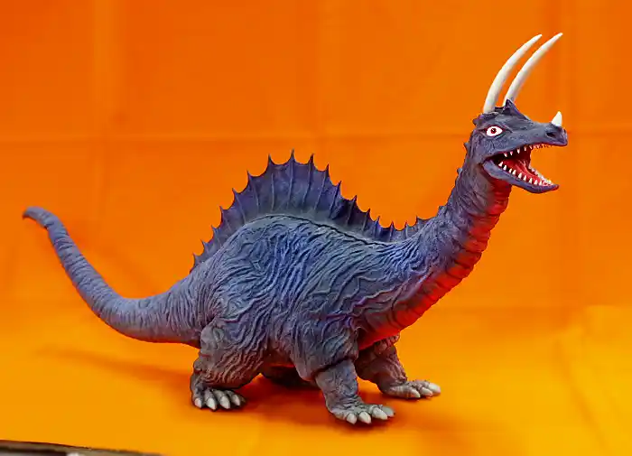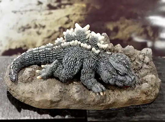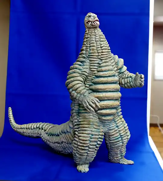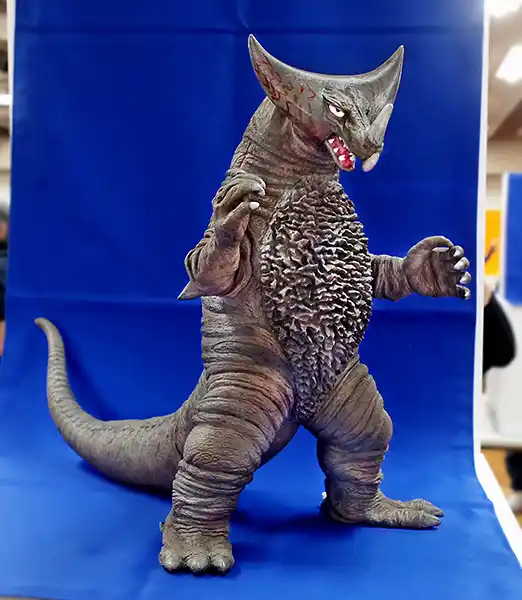 第2弾は7月発売予定で予約が開始されたジラース、右奥には次回作のゴモラ(監修中)も見えます(ジラースは頭頂高36㎝、ゴモラは全高34㎝といずれも35cm前後のモデルです)。 一方浅川作品(アス工房)の「凶暴怪獣アーストロン」も、一般版権による復刻再販がされました。 | |