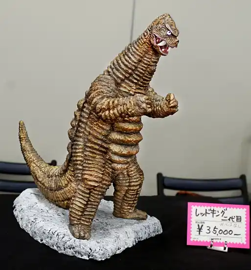 | 怪獣やメカまで南田氏の力作が並ぶテーブル。 今回は、『ウルトラマン』第25話よりレッドキング二代目が展示・販売されました。 | |