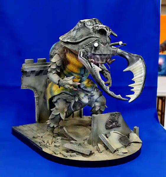 入り口からすぐの正面テーブルAでは、酒井ビオゴジと浅井ビオランテの夢の対決が実現。テーブルCでは、怪獣以外に懐かしい圆句氏のシレーヌ舞「恨」(1991年ボークス)や竹谷氏の「エイリアンパイル」(1999年フューチャーモデルズ)など歴代の名作キットの完成品も並びました。