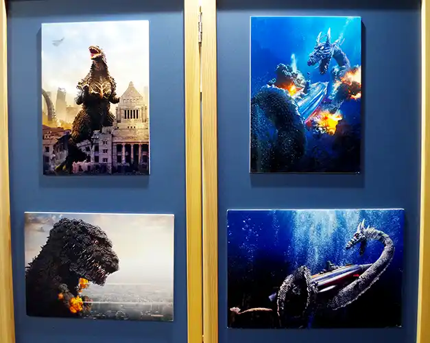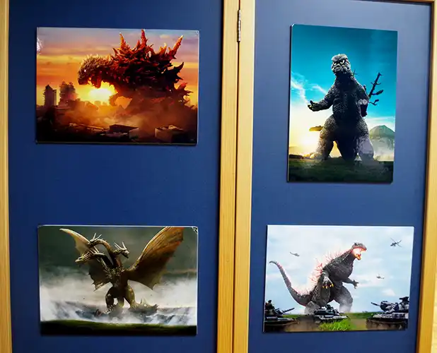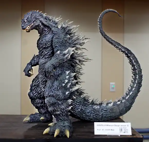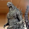 | 最新作は、どっしりと構えたマイナスワンゴジラ。 その隣に並んだのは、準新作のシン・ゴジラ雛型検討用モデルと近作の「GODZILLA Millennium Design version Ⅱ」と、いずれも33~40cm弱の大型モデルで圧巻のテーブルとなりました。 | |