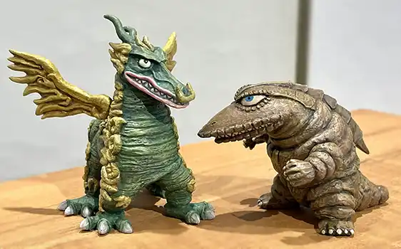 | デフォルメモデルから、Re:POST monstersシリーズの「ダンカン&ギラドラス」「ドドンゴ&テレスドン」「ペギラ&ラゴン」が展示・販売されたのですが... ごめんなさい!機材トラブルで会場撮りの写真が撮れなかったため、まっくさんのご好意でご自身が撮ったX告知用の写真を掲載させていただきます。 | |