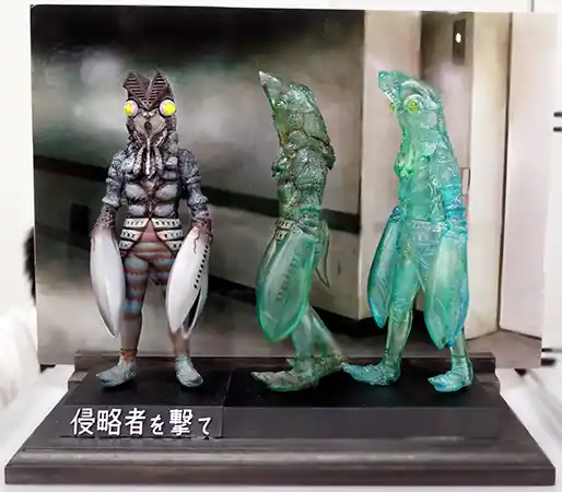 その他既発のバルタン星人分身ジオラマキットも販売されました。 さらに、ジョイント参加したヒカリトイズの「ウルトラマン~地上破壊工作カラー」(こちらはソフビ完成品フィギュア)もジオラマで展示され、とてもにぎやかなテーブルとなりました、 | |